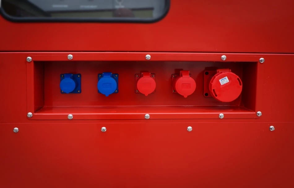 SDG 400000 DIGITAL SILENT WYPOSAŻONY JEST W WEWNĘTRZNĄ LISTWĘ ODBIORU MOCY. DODATKOWO POSIADA ZEWNĘTRZNIE UMIESZCZONE 2 GNIAZDA 230V (16A, 32A) ORAZ 3 GNIAZDA 400V (16A, 32A, 63A).