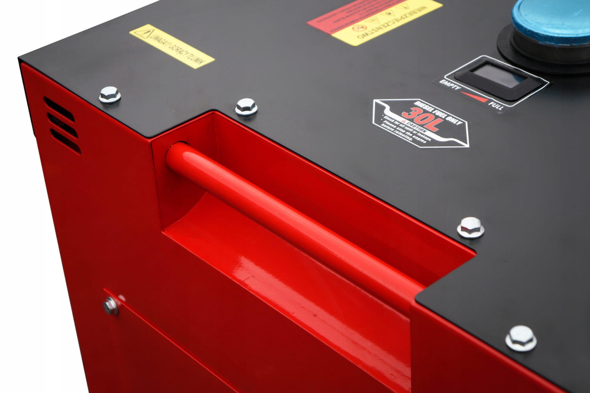- W zestawie z agregatem, kółka transportowe umożliwiające łatwe przemieszczanie maszyny.