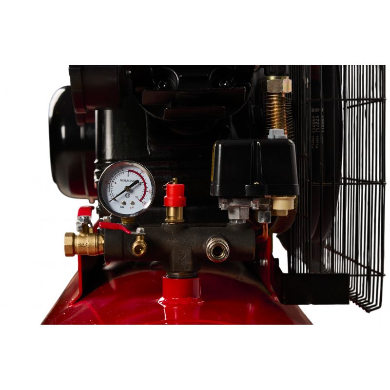 - Kompresor wyposażony jest w 3 żeliwne cylindry o zwiększonym żebrowaniu (znaczne lepsze odprowadzanie ciepła, istotny techniczny aspekt jeśli kompresor ma znaleźć zastosowanie w wymagających i długotrwałych czynnościach)