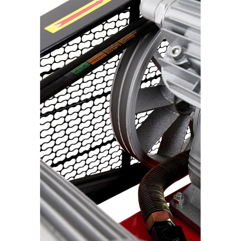 Niska waga kompresora sprawia, że jest on bardzo ergonomiczny, posiada również automatyczny system smarowania, filtrację powietrza, reduktor ciśnienia oraz koła transportowe.