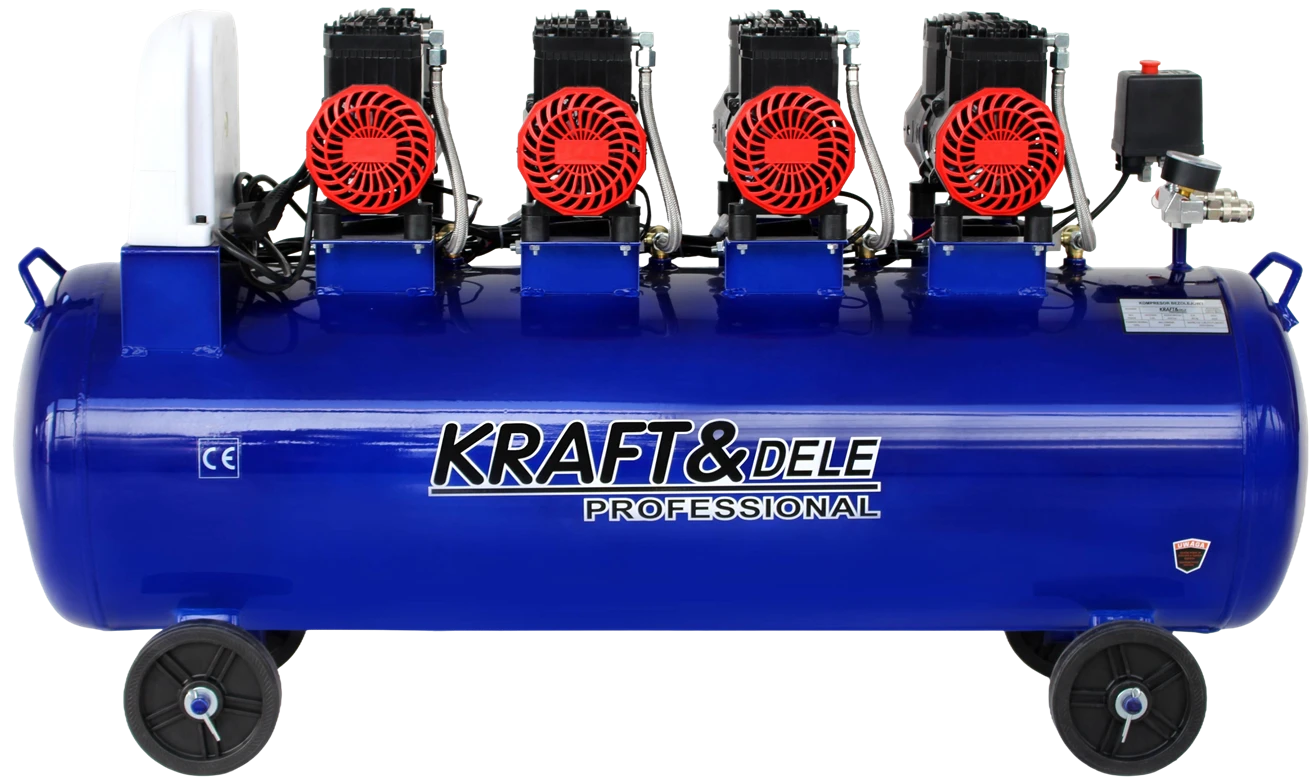 KD4095 to zaawansowany kompresor bezolejowy marki KRAFT&DELE PROFESSIONAL, zaprojektowany z myślą o intensywnych i wymagających zastosowaniach warsztatowych oraz przemysłowych. Dzięki zastosowaniu czterech tłoków, dużego zbiornika 120 litrów oraz mocnego silnika o mocy 7000W urządzenie zapewnia bardzo wysoką wydajność sprężonego powietrza przy zachowaniu czystej, bezolejowej pracy.