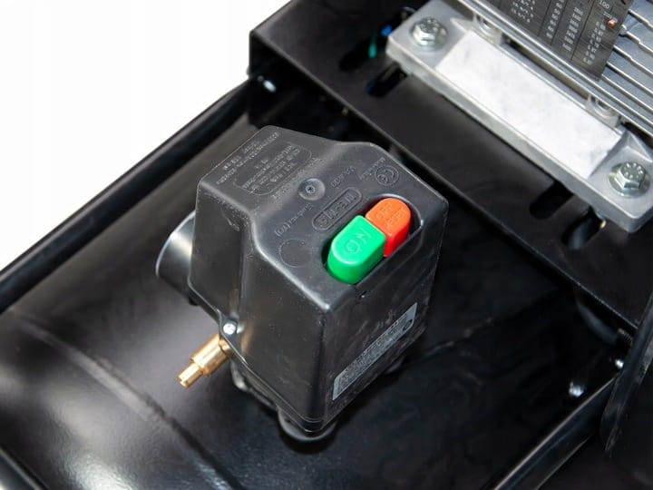 Każdy model kompresorów Nuair jest wyposażony w wysokiej jakości oryginalny wyłącznik ciśnieniowy firmy NE-MA. Jest to jeden z najważniejszych podzespołów sprężarki, który warunkuje bezpieczną i prawidłową pracę; to tu mamy ustawione ciśnienie załączania i wyłączania urządzenia.