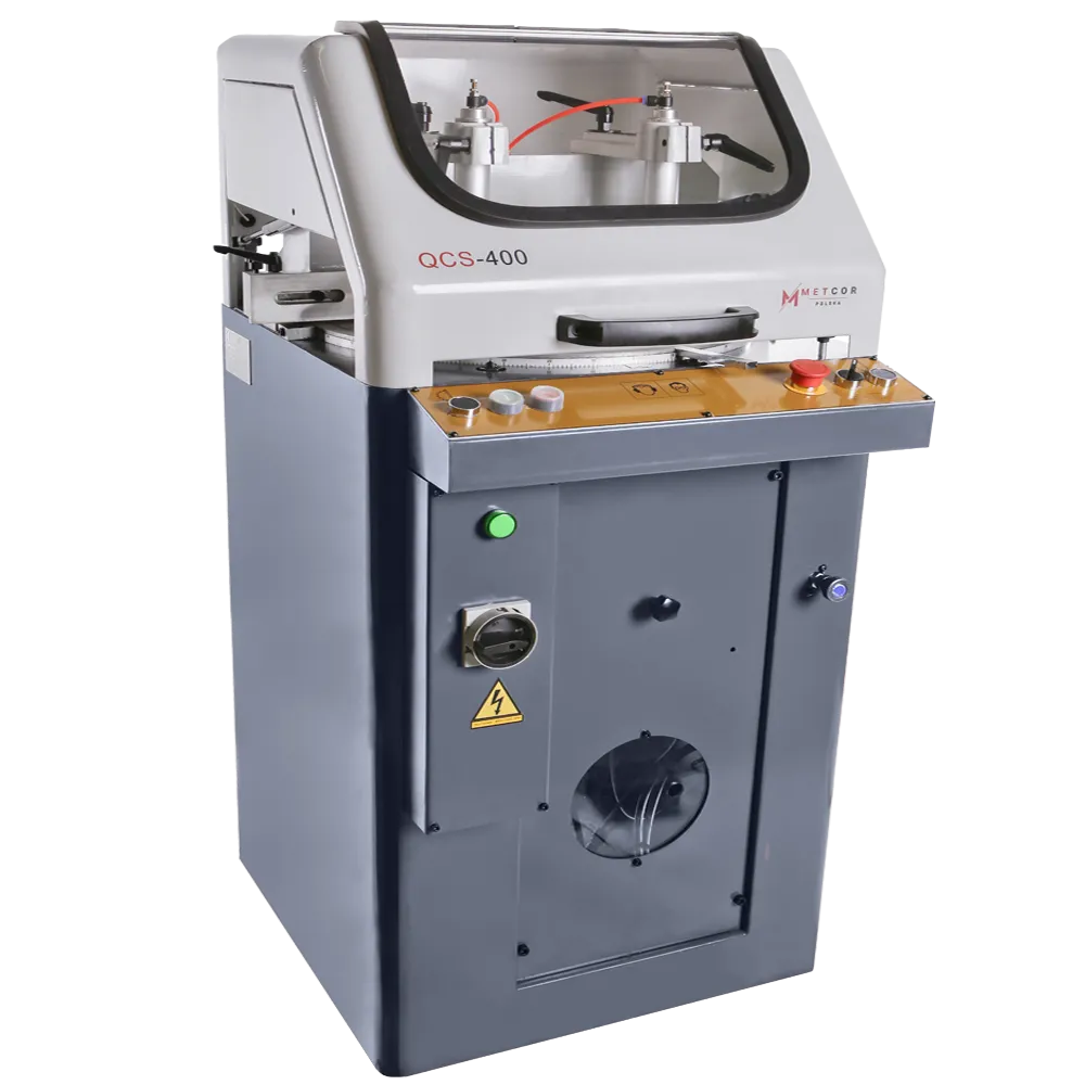 - Półautomatyczna pilarka tarczowa Metcor QCS400 sterowana pneumatycznie to stalowa tarcza obracana silnikiem elektrycznym za pomocą paska, na którego krawędzi znajdują się zęby tnące. Ruch tarczy tnącej odbywa się za pomocą napędu pneumatycznego od dołu do góry.
