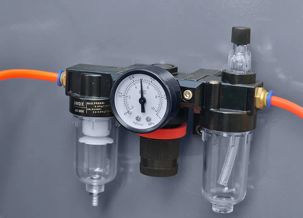 - Maszyna wyposażona jest w pneumatyczny pistolet czyszczący do czyszczenia stanowiska pracy