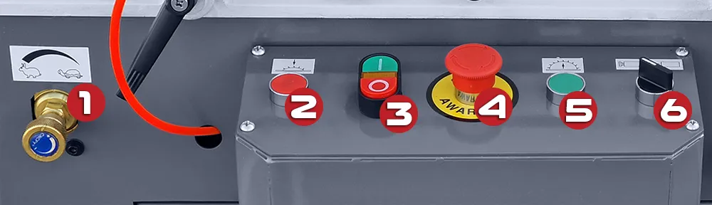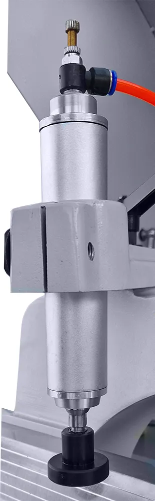 Do podłączenia maszyny potrzebne jest źródło sprężonego powietrza (ciśnienie nie mniejsze niż 0,4 MPa). - Możliwość obrotu stołu (głowicy tnącej) ze sztywnym mocowaniem w zakresie -45°...90°...+60°, możliwy jest również obrót o dowolny kąt od 0 do +180°.