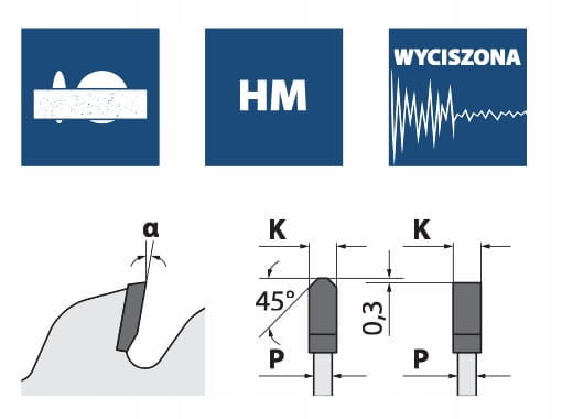 To doskonały zestaw dedykowany do pilarek stolikowych, formatowych, elektronarzędzi i nie tylko, charakteryzująca się zębem trapezowo – prostym co daje idealne wykończenie podczas cięcia płyty wiórowej laminowanej ( z podcinakiem ) i Tworzywach Sztucznych. Tarcza posiada najwyższej jakości ostrze węglikowe lutowane miedzią i srebrem do korpusu wykonanego ze Szwajcarskiej Stali. Posiada nacięcia wyciszające / antywibracyjne wewnątrz korpusu oraz nacięcia kompensacyjne od zewnętrznej części korpusu. Tarczę dodatkowo można wielokrotnie ostrzyć.