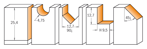 CMT Zestaw 5 frezów prostych i profilowych S6 mm