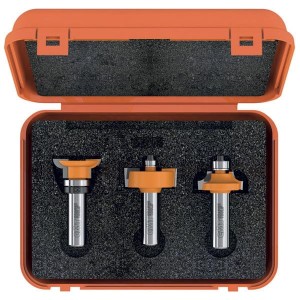 Ten zestaw trzech frezów pozwoli Ci wykonać listwy dzielące we wszelkiego rodzaju drzwiczkach. Zestaw zawiera frez „Ovolo” do kształtowania krawędzi listew, frez kształtowy umożliwiający łączenie listew na ich końcach i frez do wpustu na szybę. Zamontowane łożysko pozwala uzyskać zakrzywione ramki. Kształt profili umożliwia wykonanie mocnego połączenia typu czop – gniazdo. Korpusy frezów CMT wykonane są z najwyższej jakości stali szwajcarskiej oraz posiadają lutowane ostrze HM i pomarańczową powłokę teflonową która wydłuża żywotność narzędzia i poprawia jakość pracy.