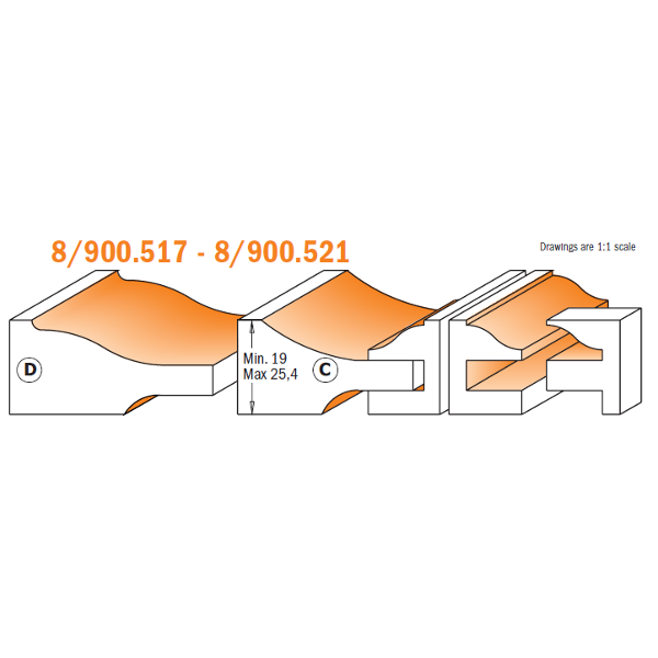 Zestaw frezów do drzwi / ramiaków i płycin S12 mm profil D