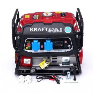 Przenośny agregat prądotwórczy jednofazowy o oznaczeniu KD150 marki Kraft&Dele przeznaczony jest do generowania prądu zmiennego 220V-230V za pomocą silnika spalinowego japońskiej konstrukcji OHV 4-suwowego o mocy 3KM oraz mocy maksymalnej prądnicy 1500W.