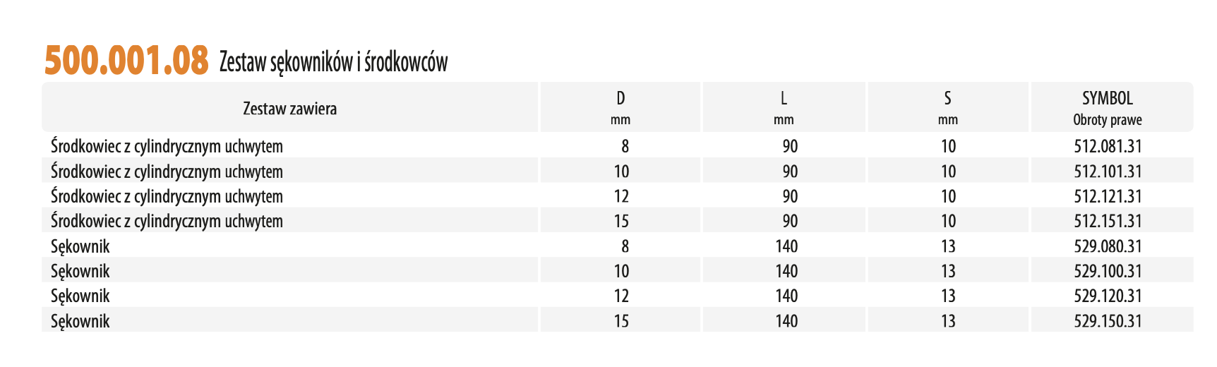 - Średnica (D [mm]): 8, 10, 12, 15
