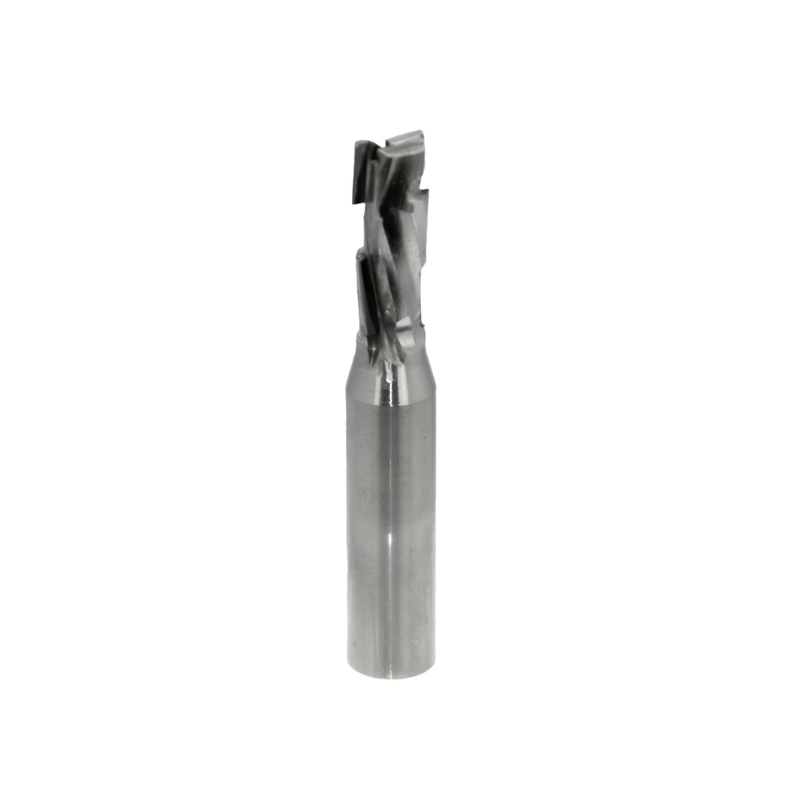 Ekonomiczny frez trzpieniowy prosty typ TJD-073 z możliwością 3-4 krotnego ostrzenia. Nowa konstrukcja freza TJD-073, a w tym rozmieszczenie ostrzy, pozwala na lepsze odprowadzanie wióra podczas frezowania, co jednocześnie przekłada się na wydłużenie żywotności narzędzia oraz zwiększenie jakości obróbki. Do użytku na CNC lub frezarkach górno wrzecionowych - wykorzystywany również do pracy z szablonem do łączenia blatów. Odpowiednia geometria ostrzy sprawia że zęby dociskają laminat górny od góry, i zarówno dolny od dołu, co minimalizuje wyrywanie laminatu.