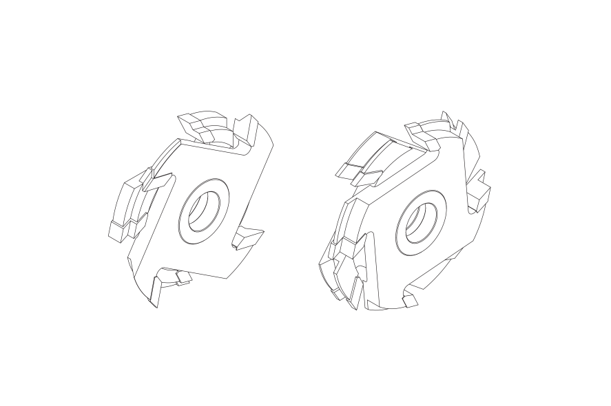 Zestaw frezów nasadzanych, profilowych typ 6200 z czterema ostrzami skrawającymi, przeznaczony do profesjonalnej obróbki drewna litego. Zestaw zaprojektowany do frezowania pióra oraz wpustu przy produkcji boazerii. Regulacja szerokości za pomocą przekładek dołączonych do zestawu. Zestaw dostosowany do maszyn dwuwrzecionowych.