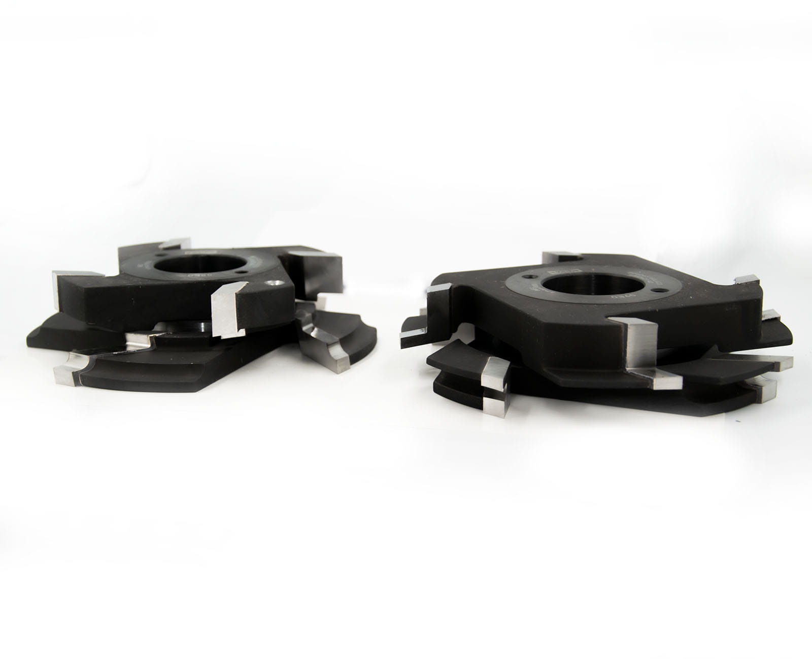 Zestaw frezów nasadzanych, profilowych typ 6200 z czterema ostrzami skrawającymi, przeznaczony do profesjonalnej obróbki drewna litego. Zestaw zaprojektowany do frezowania pióra oraz wpustu przy produkcji boazerii. Regulacja szerokości za pomocą przekładek dołączonych do zestawu. Zestaw dostosowany do maszyn dwuwrzecionowych.