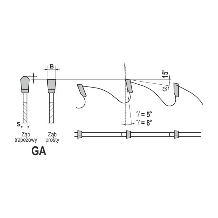 - Kształt zęba (ZĄB): trapez prosty