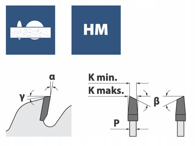 Do podcinania płyt laminowanych, żywotność do 50 razy dłuższa w porównaniu do pił HM, bardzo korzystny stosunek żywotności do ceny.