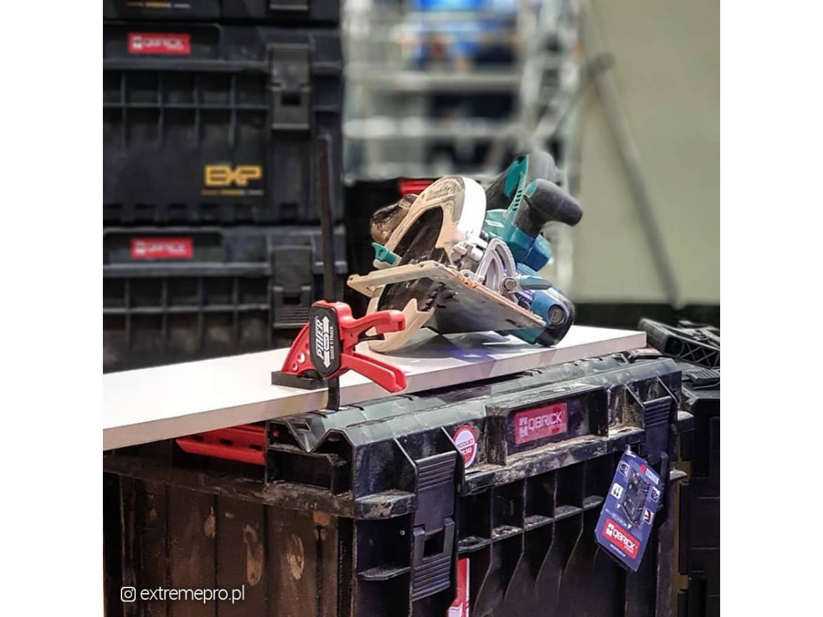- kompatybilność z szynami prowadzącymi: Dewalt, Festool, Makita oraz Skrzynie Qbrick SYSTEM